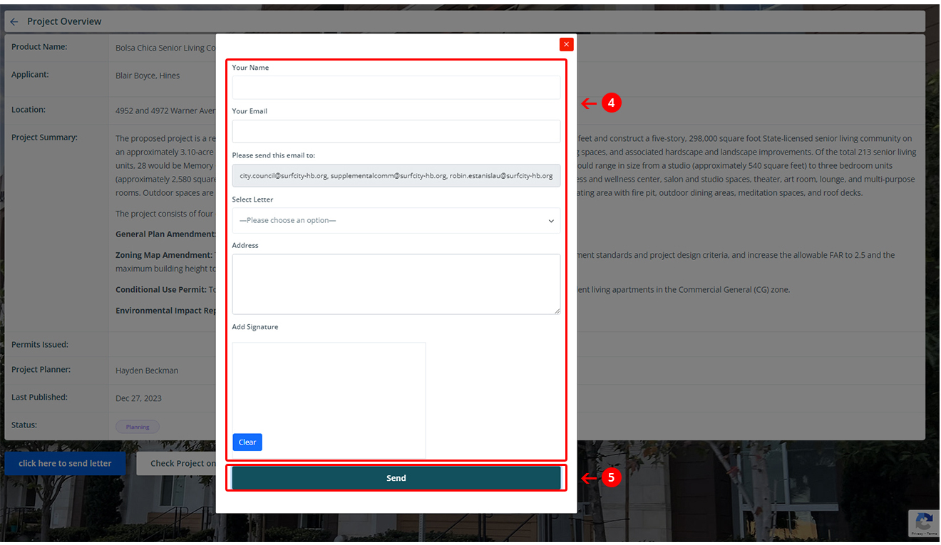 How to send an objection letter to the city of Huntington Beach