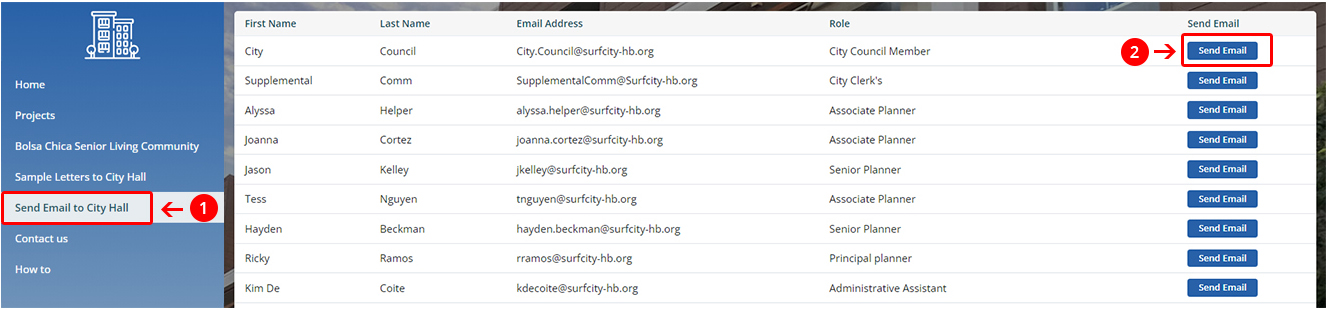 1. Click on the "send email to city hall" tab.