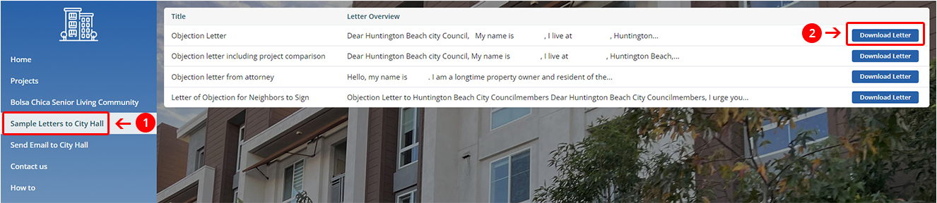 1. Click the "Sample Letters to city Hall" tab